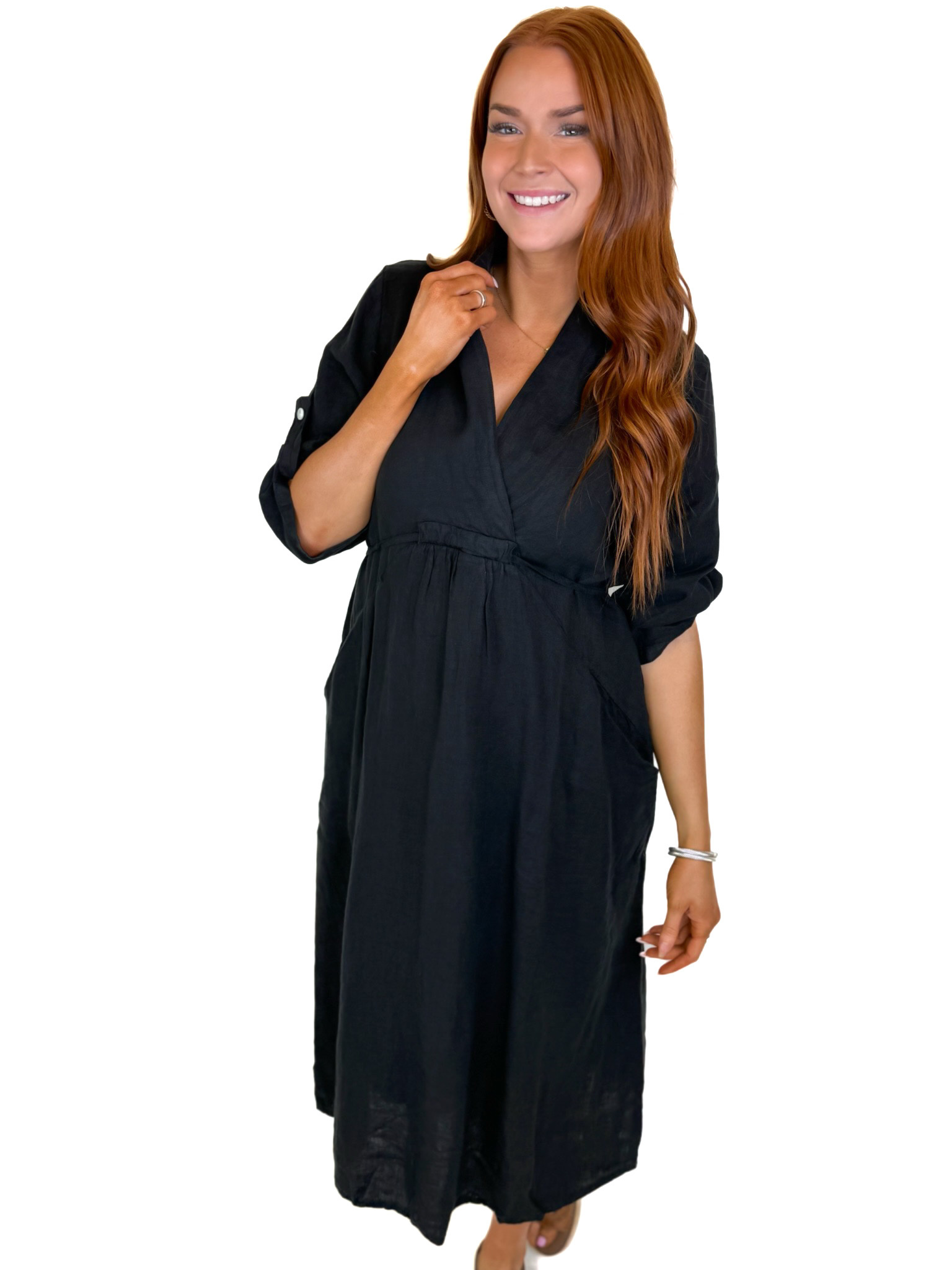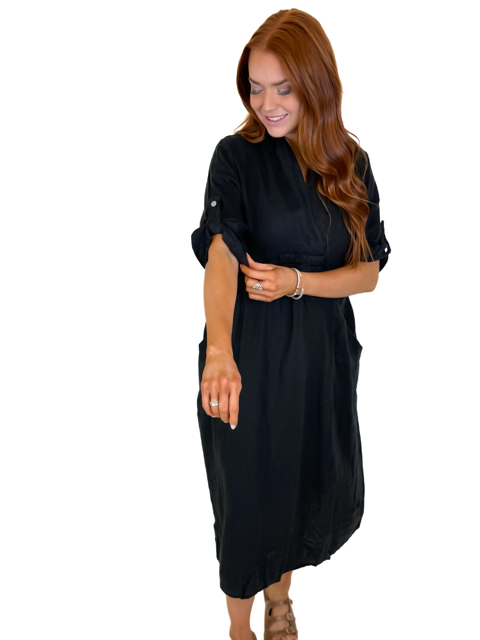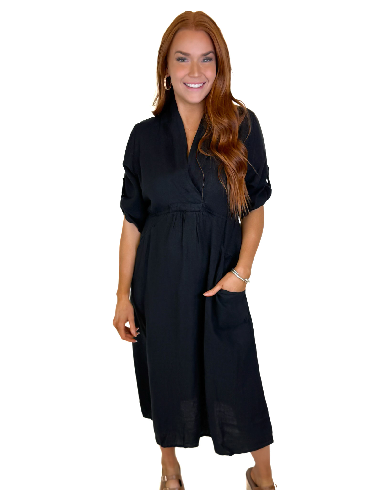 BLACK LINEN MIDI DRESS