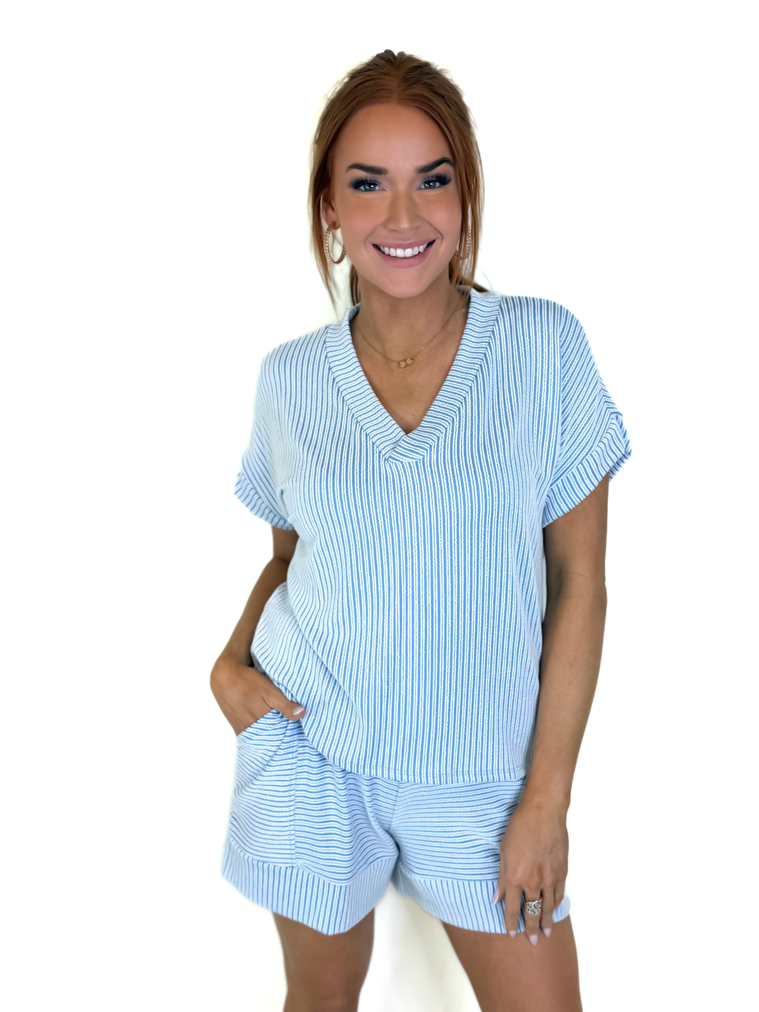 BLUE VNECK SHORT SET