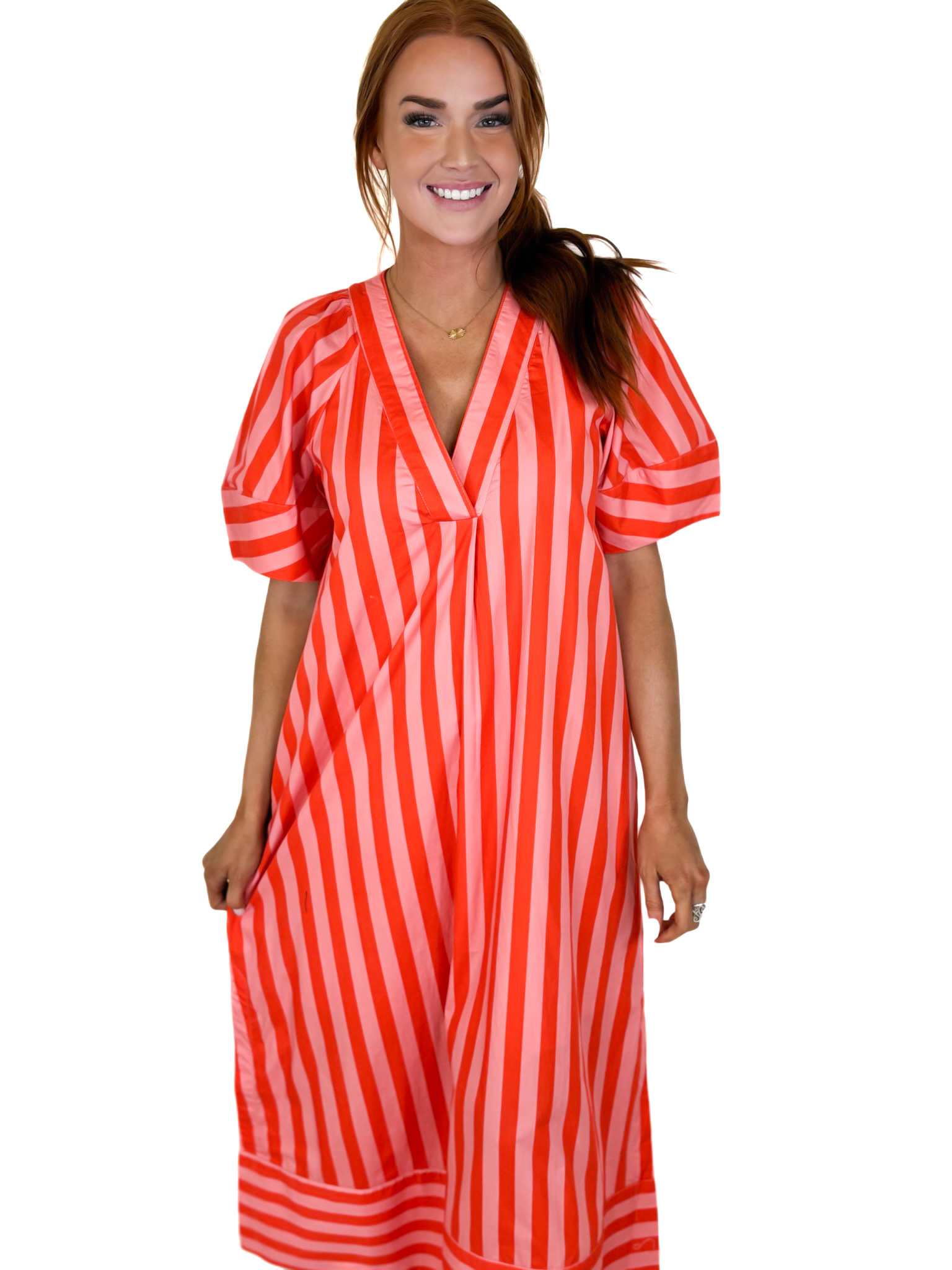 CORAL STRIPE MAXI DRESS