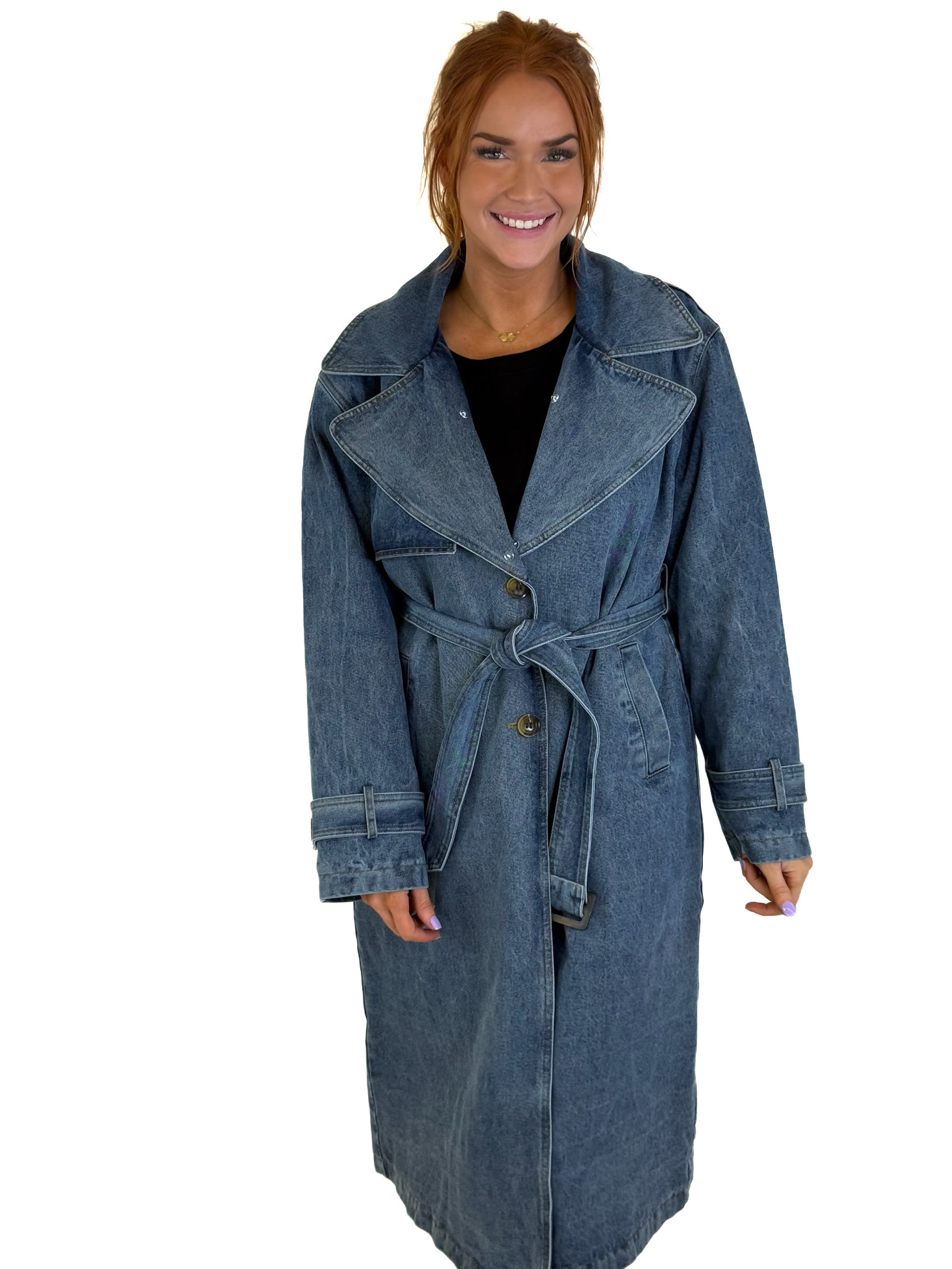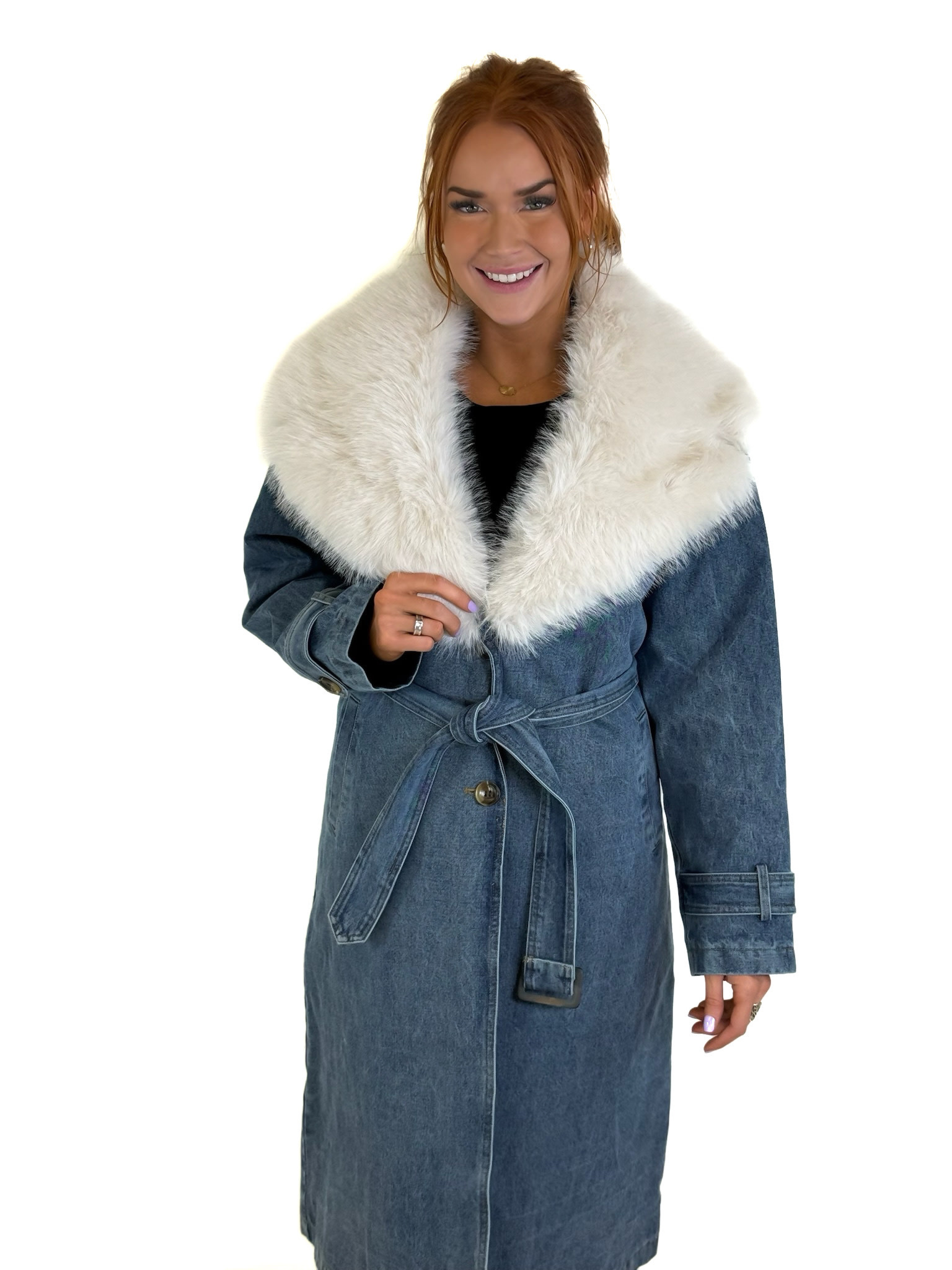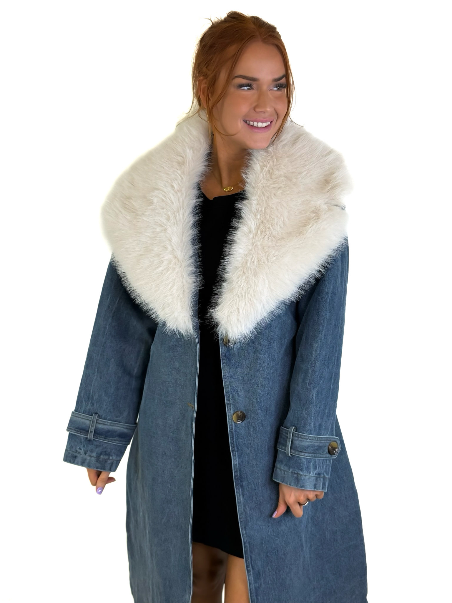 DENIM COAT W/ REMOVEABLE FUR COLLAR