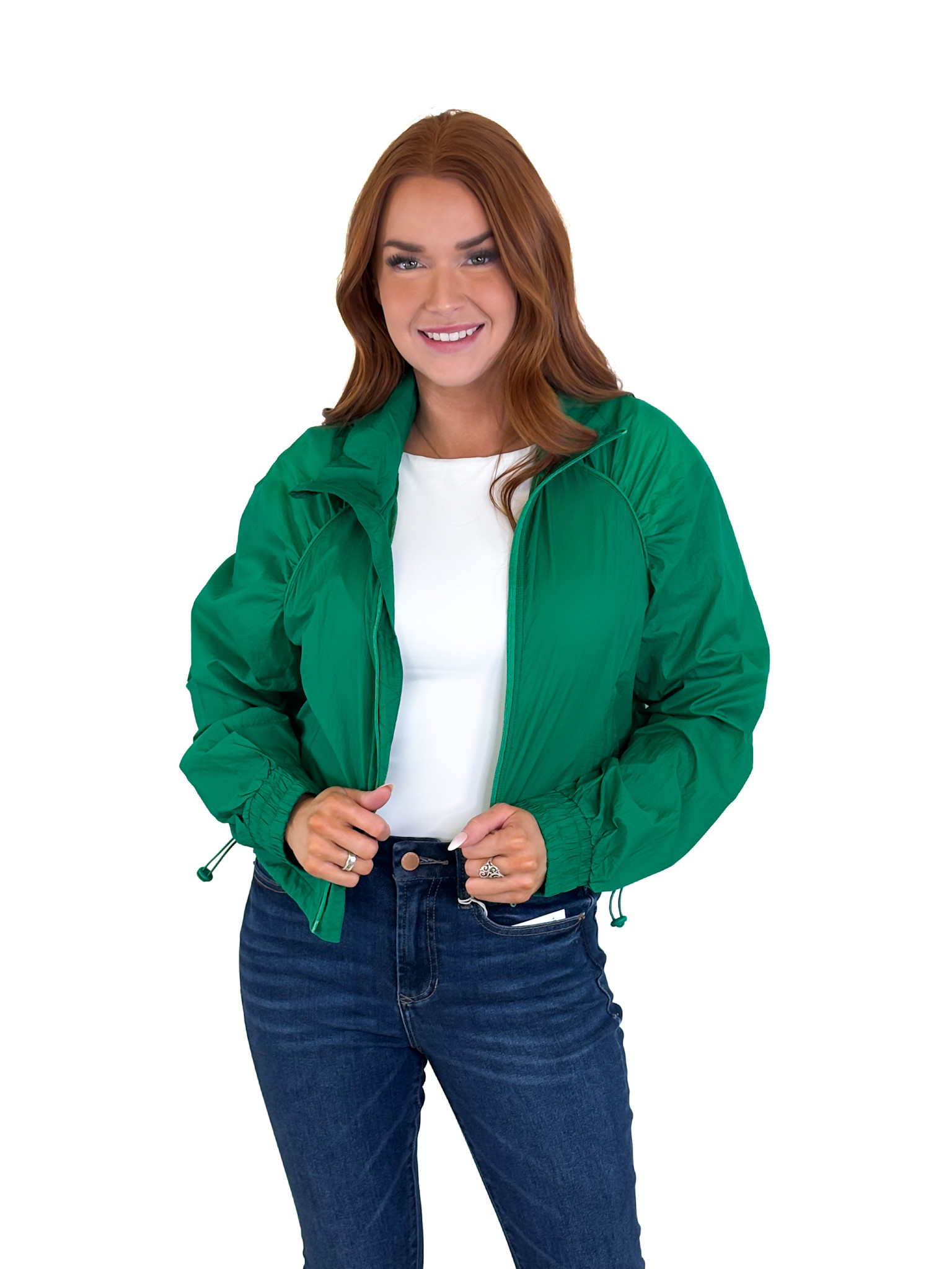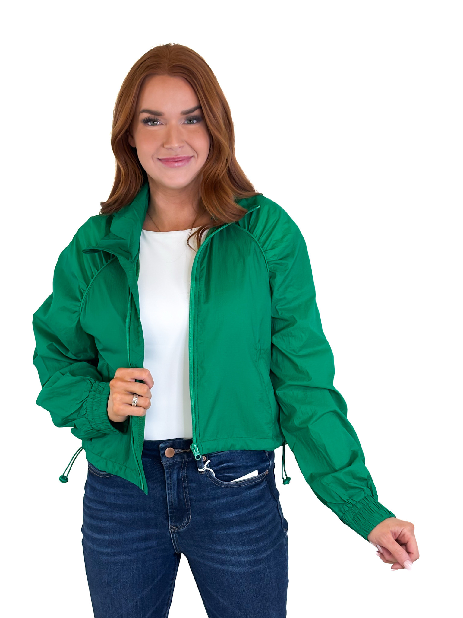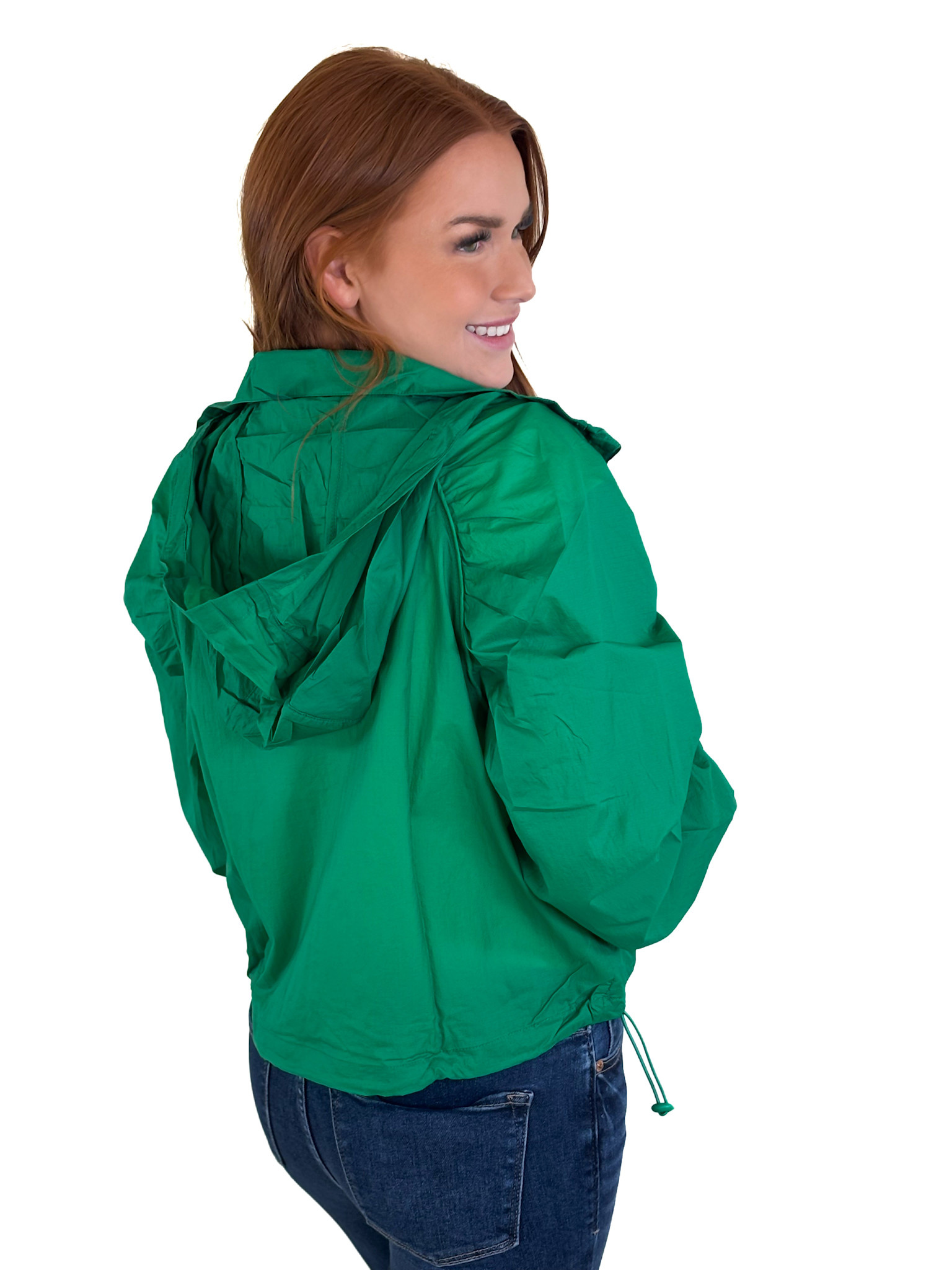 Green Solid Sport Jacket W/Hood