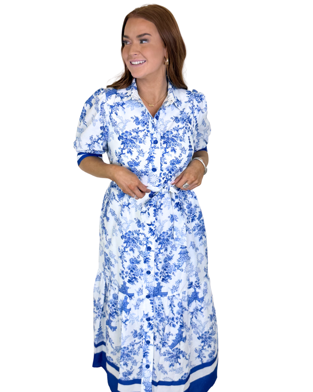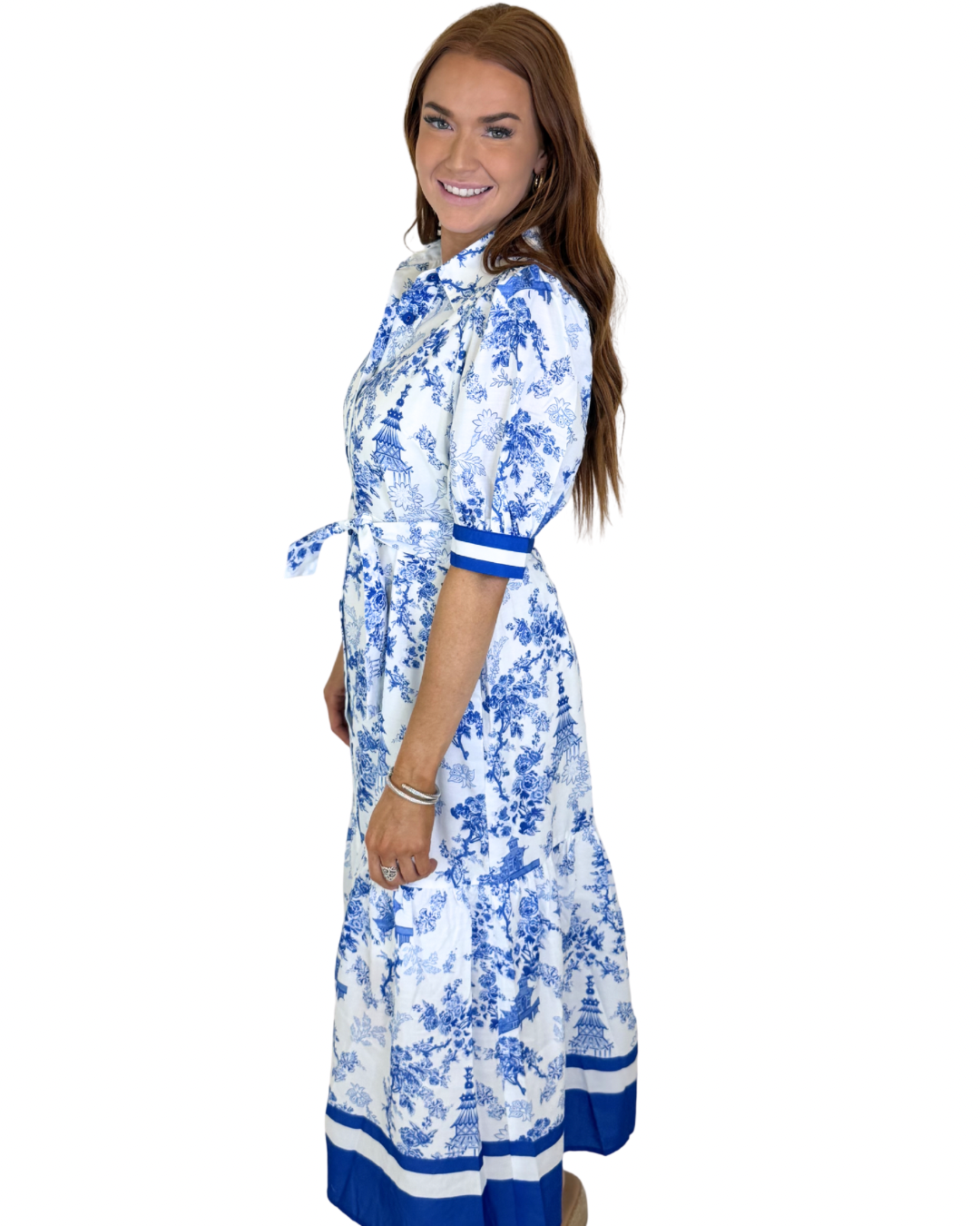 ORIENTAL BLOOM TIRED MIDI SHIRT DRESS