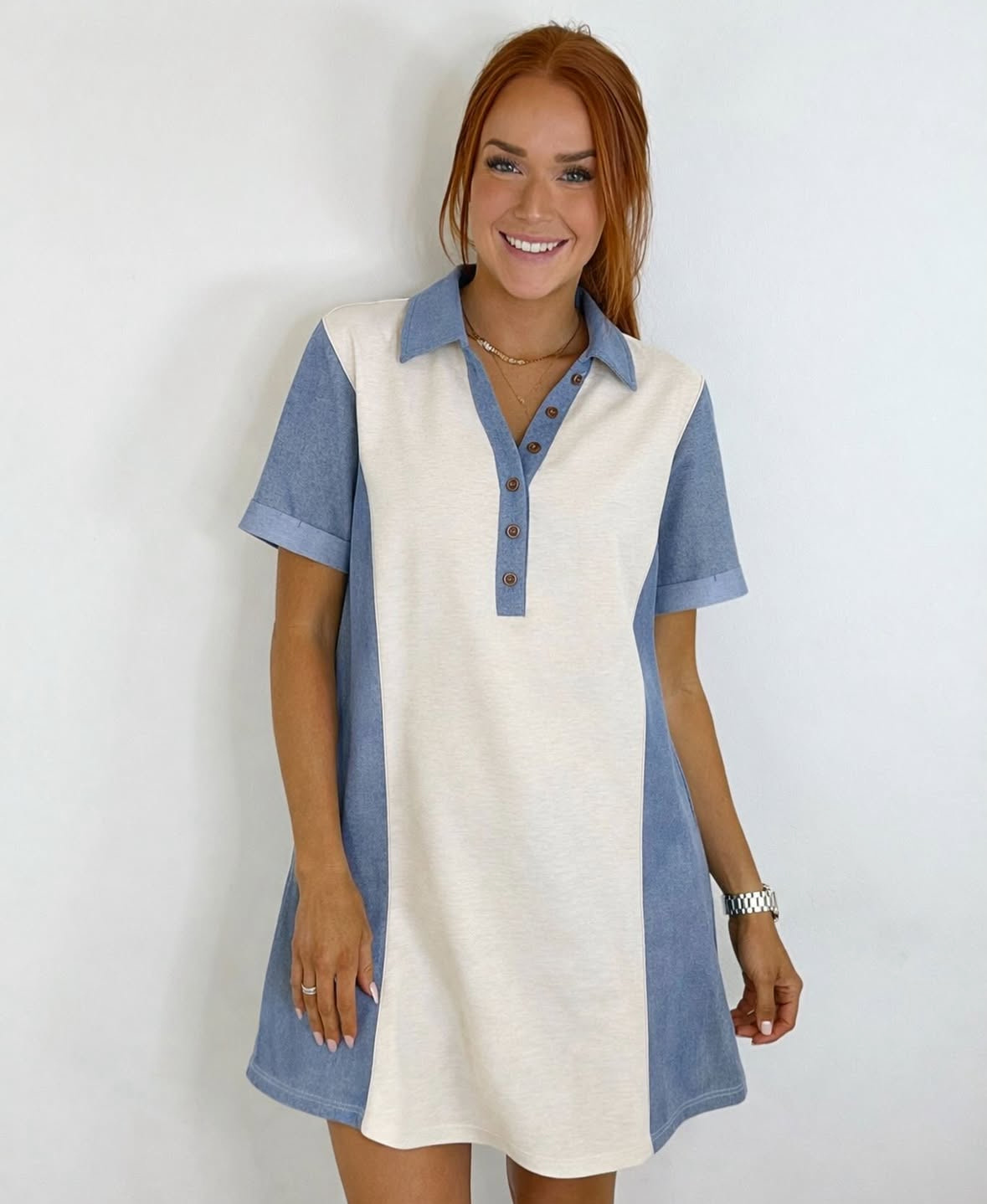 PATCHWORK DENIM SHIRT DRESS