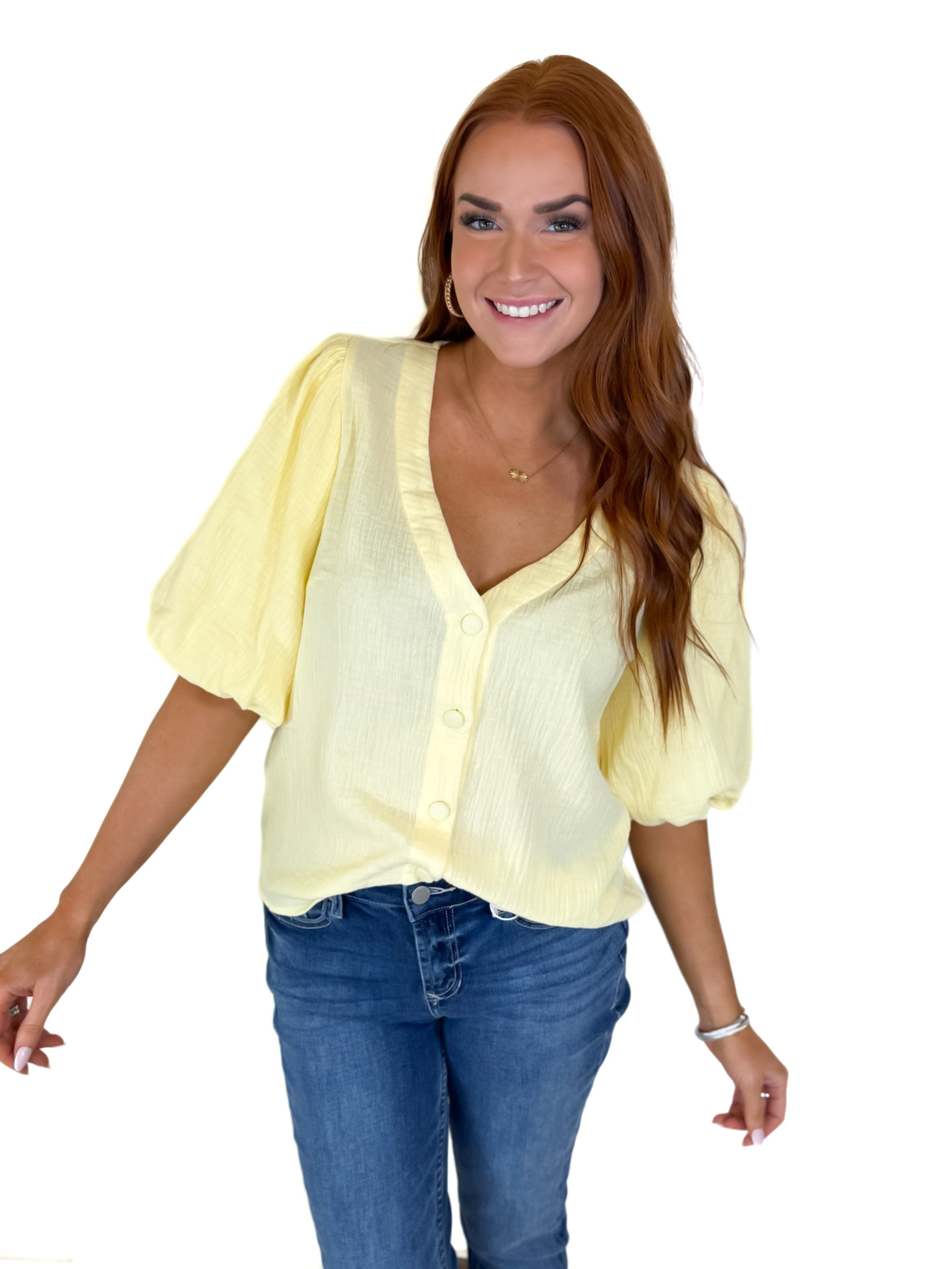YELLOW BUBBLE SLEEVE TOP